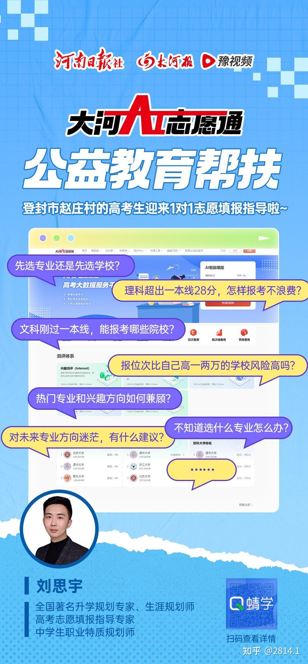 今年,蜻蜓高考志愿规划师为河南公益教育帮扶活动做了公益报考咨询,解答河南省内学生和家长的报考疑惑
