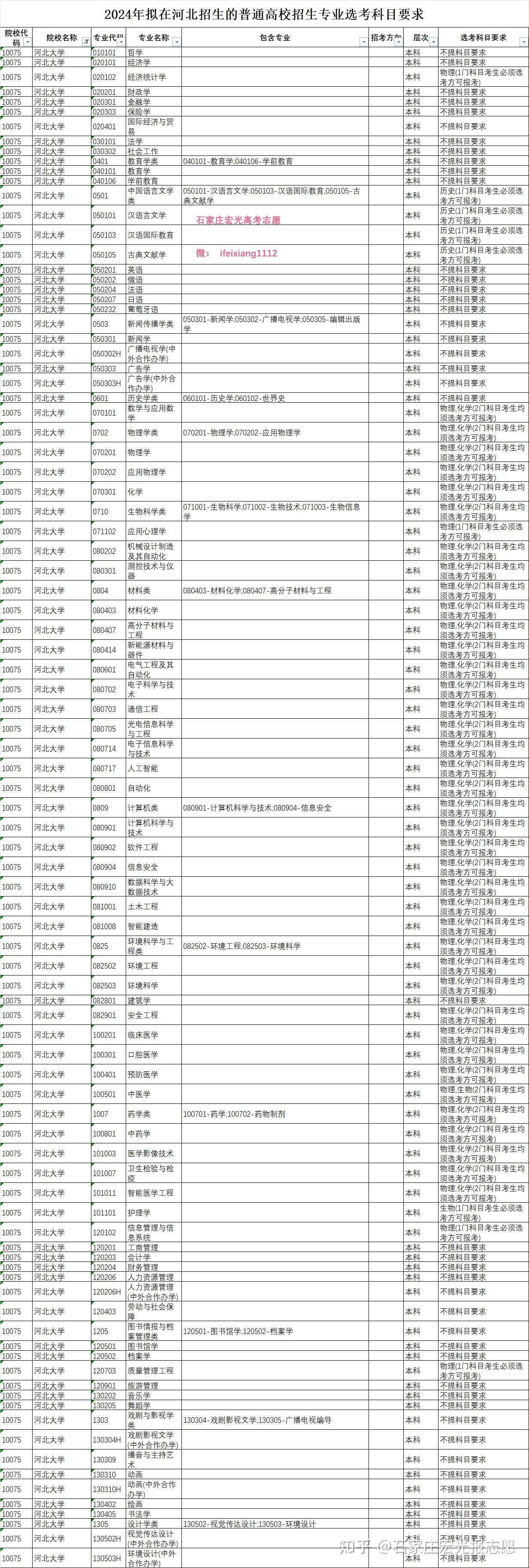 今年单选物理的考生在选择专业时候,要仔细对比选科要求,选择自己心仪的专业,切勿盲目的对比往年的选科要求。下图以省内河北大学的选科要求作为参考,河北大学专业较多,且省内院校招生专业数量覆盖的比较全。